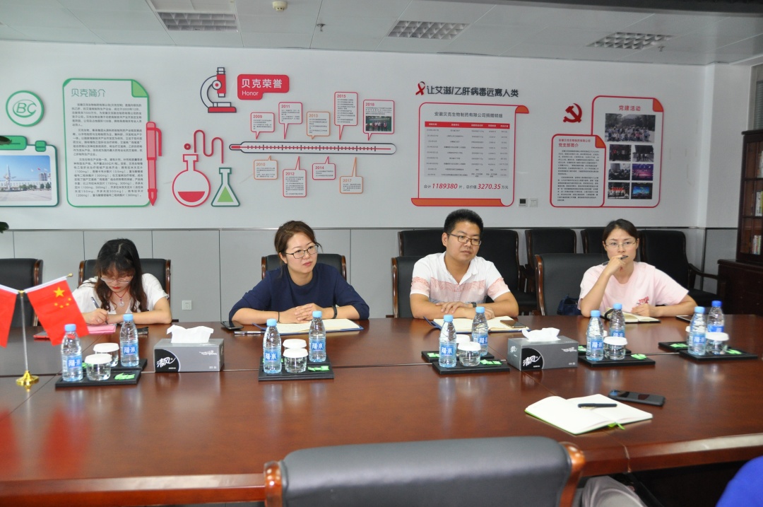 2019年8月14日下午,興園中心黨委副書(shū)記張爽、興園中心黨委黨建科胡朋飛等一行4人冒著烈日炎炎蒞臨安徽貝克生物黨支部交流、指導(dǎo)黨建工作。