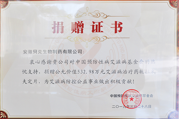 艾滋藥物捐贈(zèng)證書