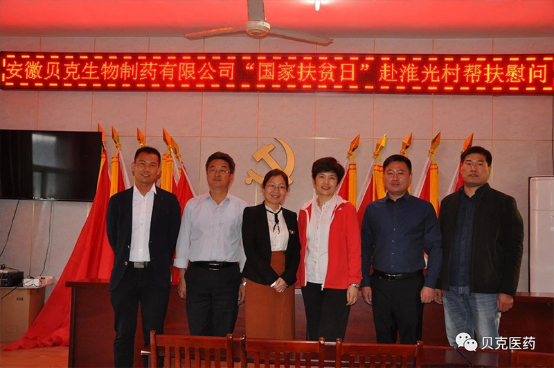 為扎實(shí)做好精準(zhǔn)扶貧工作,積極響應(yīng)全國扶貧日活動(dòng)號召,在第六個(gè)國家撫貧日這個(gè)特殊的日子里,貝克集團(tuán)副總蔡薇、貝克制藥黨支部宣傳委員劉敬春帶領(lǐng)黨支部成員及各相關(guān)部門人員深入長豐縣左店鄉(xiāng)淮光村開展精準(zhǔn)扶貧工作。