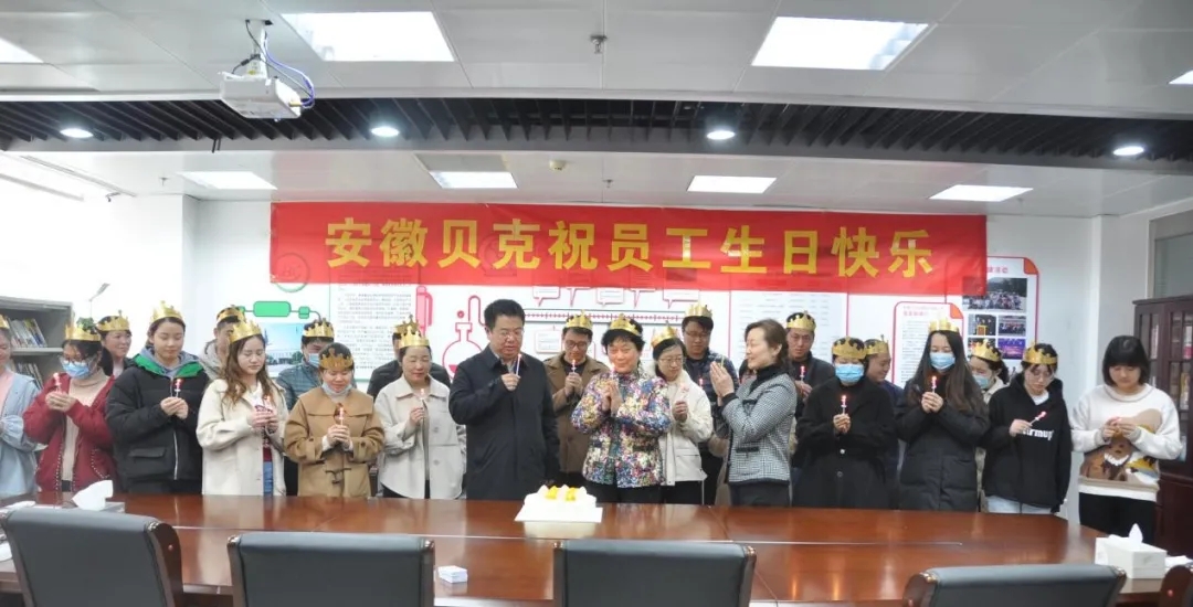 貝克制藥集團(tuán)工會主席張華、貝克經(jīng)營公司工會主席劉子忠分別在太和和合肥兩地公司為72名員工舉辦了生日會,為大家發(fā)放福利卡,并送上了溫馨的祝福。